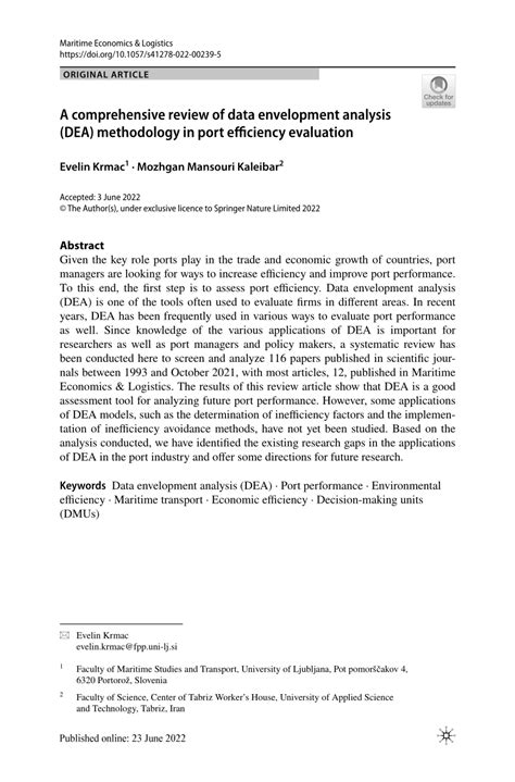 a comprehensive review of data envelopment analysis dea methodology in port efficiency evaluation. There are any references about a comprehensive review of data envelopment analysis dea methodology in port efficiency evaluation in here. you can look below.