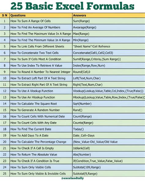 basic excel formulas and functions