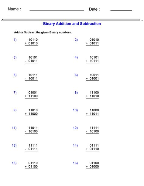 binary addition and subtraction practice problems