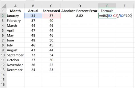 calculate mean absolute error in excel