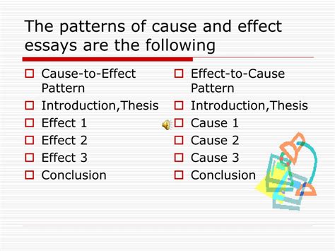 cause and effect in writing pattern. There are any references about cause and effect in writing pattern in here. you can look below.