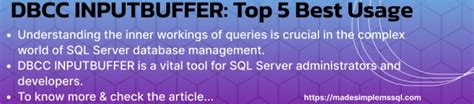 dbcc inputbuffer in sql server. There are any references about dbcc inputbuffer in sql server in here. you can look below.