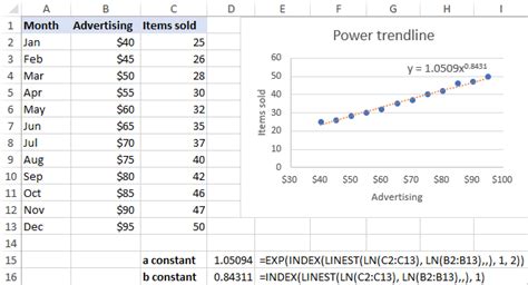 excel power function trendline