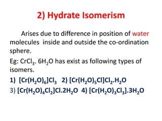 explain hydrate isomerism with suitable example. There are any references about explain hydrate isomerism with suitable example in here. you can look below.