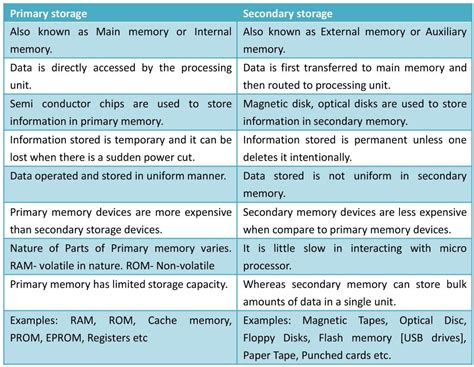 explain the various primary and secondary storage devices