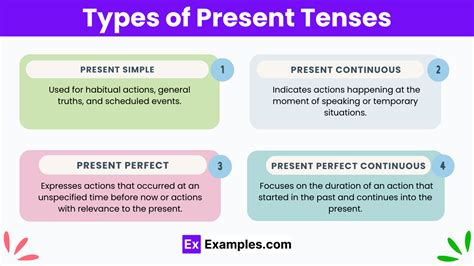 four types of present tense with examples. There are any references about four types of present tense with examples in here. you can look below.