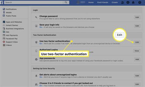 how to change two factor authentication email facebook