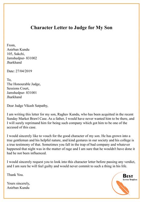 how to write a character letter to a judge for my son. There are any references about how to write a character letter to a judge for my son in here. you can look below.