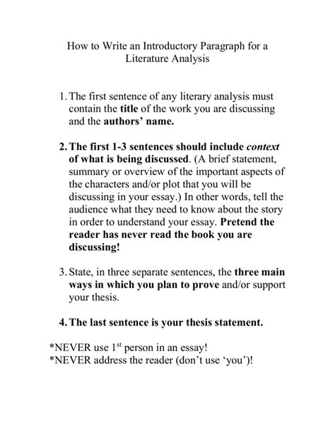 how to write an introduction paragraph for a literary analysis