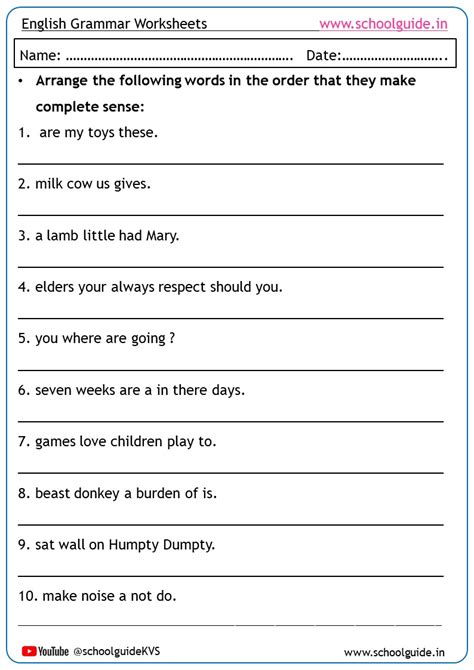 jumbled sentences worksheet for class 5th