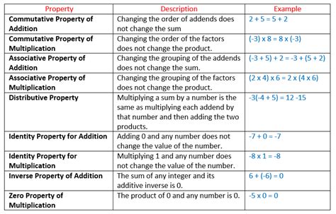 properties in maths with examples