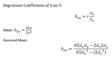 regression coefficient of y on x formula example