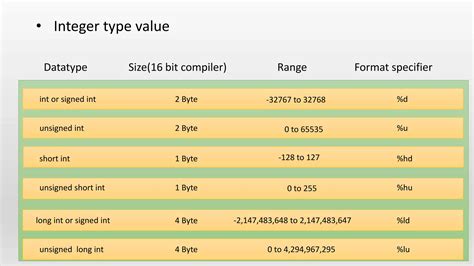 size of int in 16 bit compiler. There are any references about size of int in 16 bit compiler in here. you can look below.