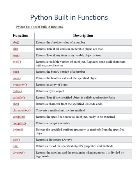 standard type built in functions in python