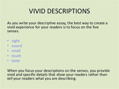 vivid description examples. There are any references about vivid description examples in here. you can look below.