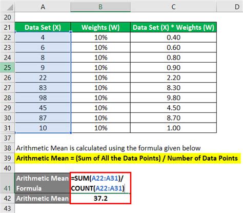 weighted arithmetic mean excel
