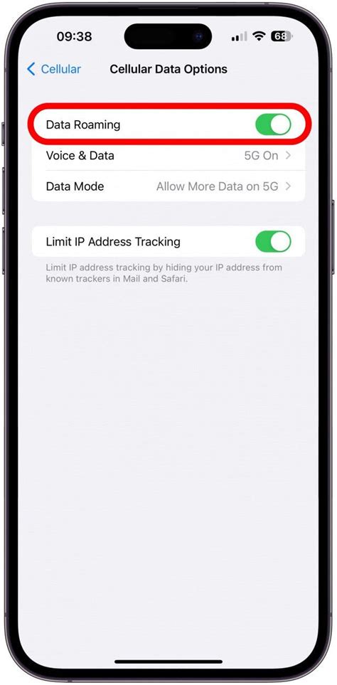 what does cellular data options roaming on mean