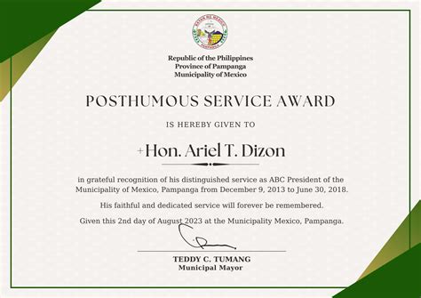what does posthumously awarded mean. There are any references about what does posthumously awarded mean in here. you can look below.