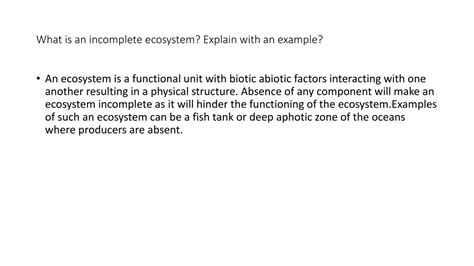 what is an incomplete ecosystem explain with the help of suitable example. There are any references about what is an incomplete ecosystem explain with the help of suitable example in here. you can look below.