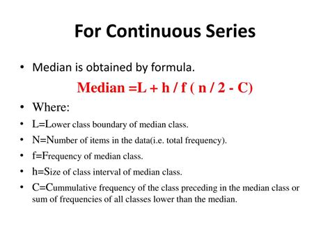 what is the formula for finding the median in a continuous series. There are any references about what is the formula for finding the median in a continuous series in here. you can look below.