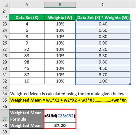 what is the formula for weighted mean in excel