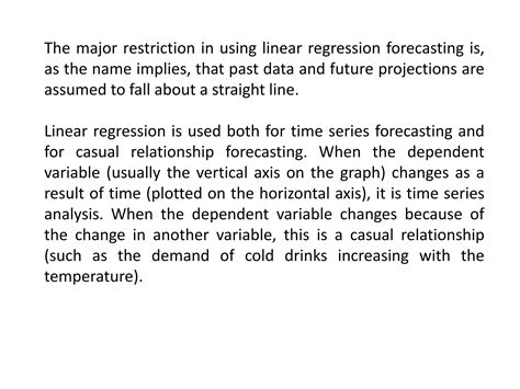 what is the major restriction in linear regression forecasting. There are any references about what is the major restriction in linear regression forecasting in here. you can look below.