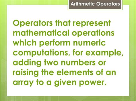 which is arithmetic operator. There are any references about which is arithmetic operator in here. you can look below.